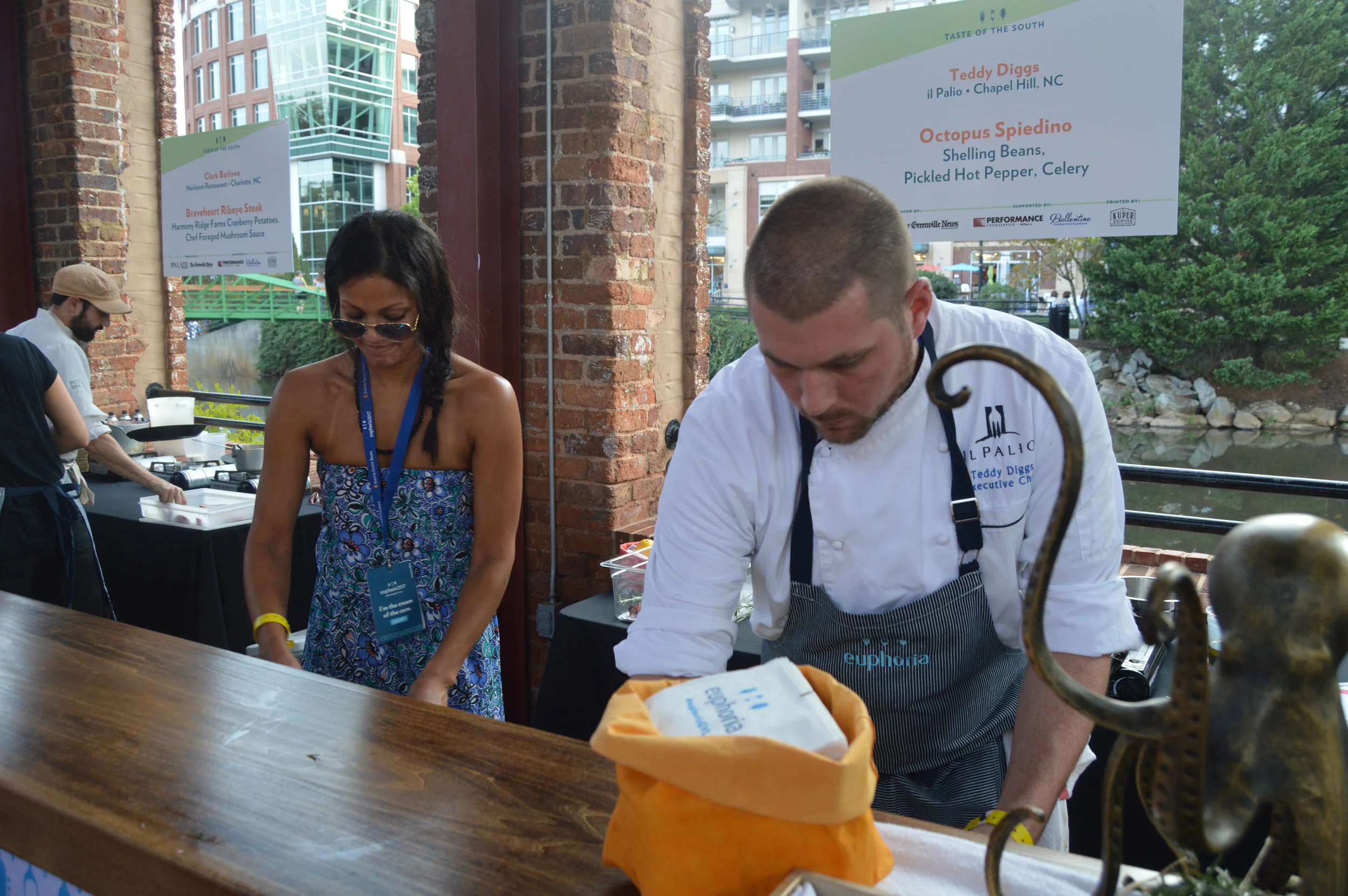 And finally, in what was likely the most talked about dish of the evening, Chef Teddy Diggs of Il Palio in Chapel Hill dished out Octopus Spiedino with Shelling Beans, Pickled Hot Pepper and Celery with a sprig of rosemary to make the dish even more delightful.