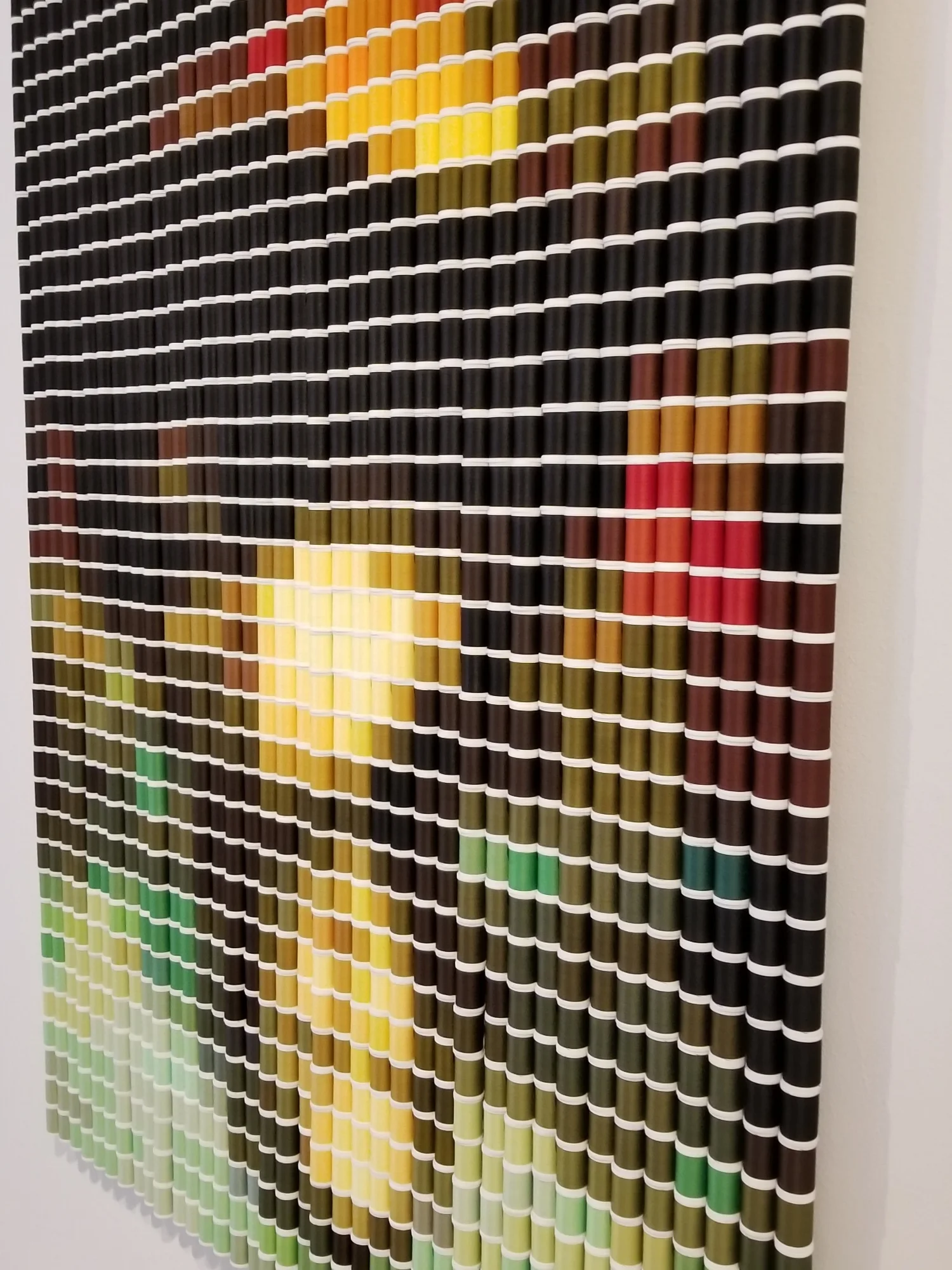 1482 spools of thread hang on the wall of the Knoxville Museum of Art. At first glance, they might appear to just be a colorful assortment put together by someone who loves to sew, but upon closer examination, and through the guise of a small glass sphere, a masterpiece is revealed. Devorah Sperber, an artist who lives and works in New York created this work called “After the Mona Lisa 8.” It’s one of the many surprises you’ll find at KMA.