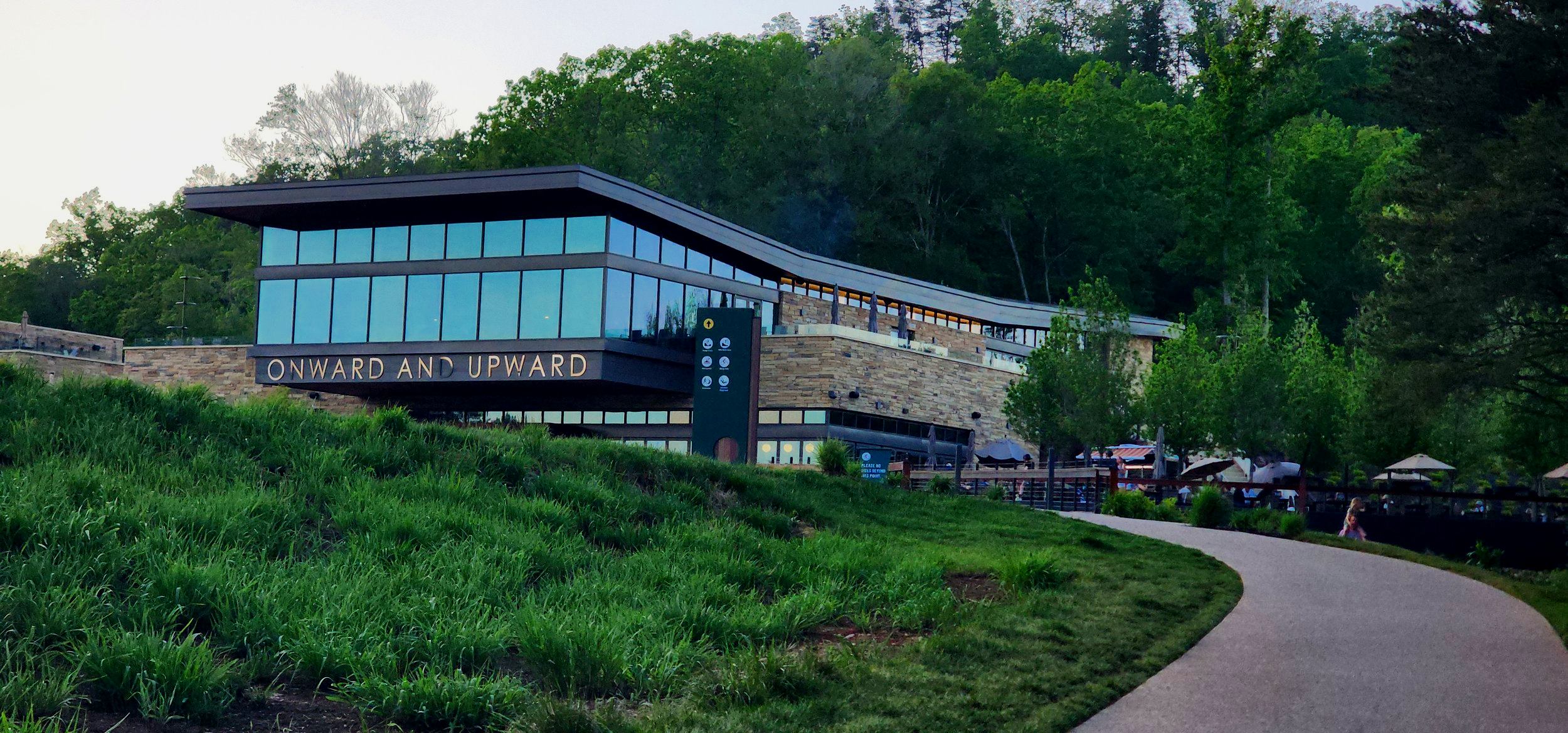 For the hundreds of people passing by Aspire on Clinch Avenue, the thing that is probably most noticeable is the large stone and glass building at the base of a high ridge. On the side are dark green letters which spell out the word Aspire.. This is the Onward and Upward Building, a great place to start a visit to this one of a kind park just minutes from downtown Knoxville.