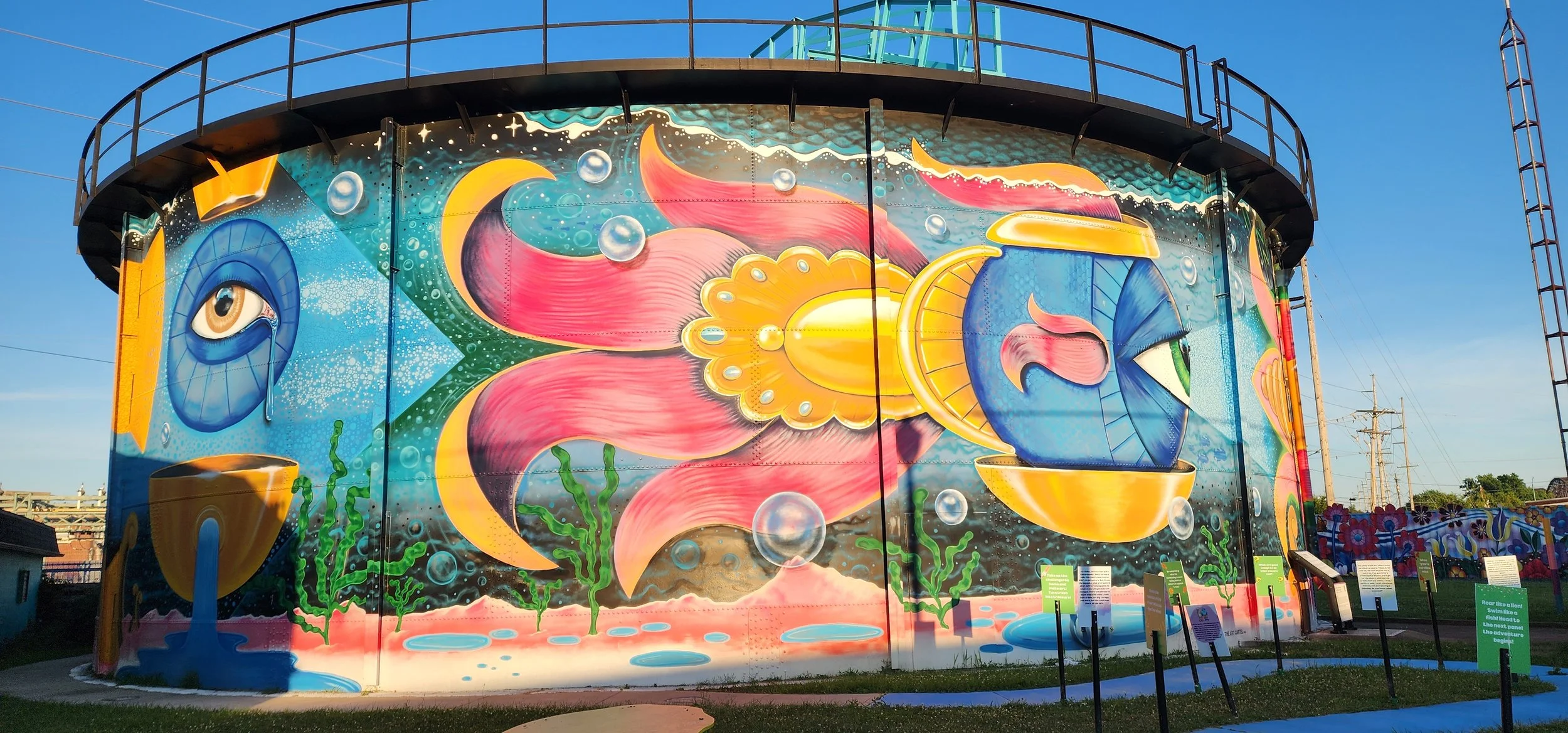 Just a few blocks from the Ohio River in Jeffersonville the NoCo Arts District brings the creativity of Southern Indiana and Louisville to life. Once a blighted area, artists have transformed this neighborhood into a magical wonderland of color and inspiration. At the center of it all is a water tank covered in whimsical artistry that is a draw for people of all ages. The district is also home to Maker 13, a place offering artists of all types, space and tools to create almost anything they want.