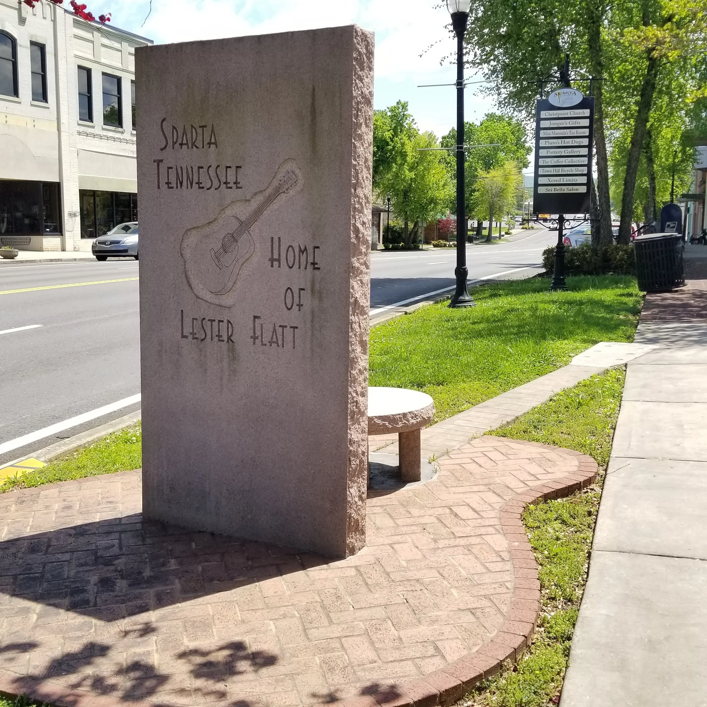The Lester Flatt Monument sits in the heart of Downtown Sparta.